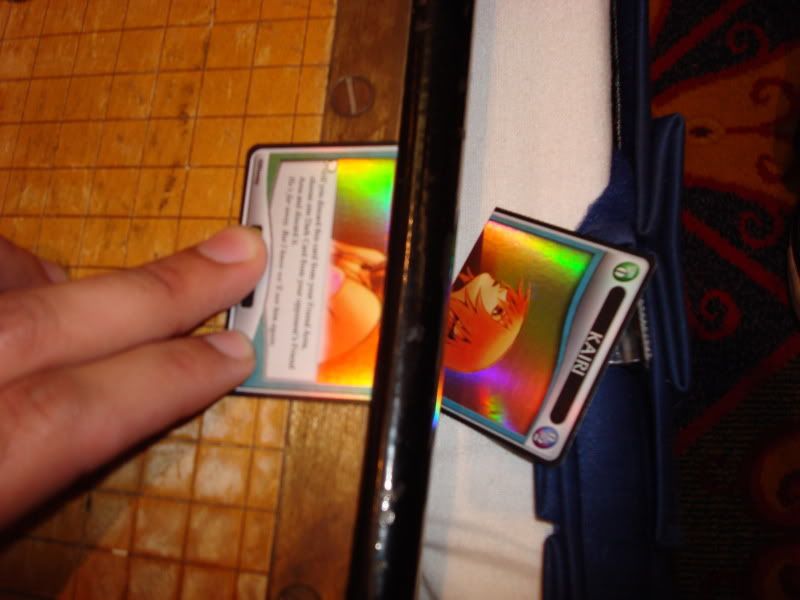 IMPORTANT LESSON: GET LOTS OF SLEEP. Maybe it was excitement for the tournament that only gave me two hours of sleep last night, whatever, sleep is important. Sakura is a 6HS character, how I had seven cards in my hand round one i'll never know. Don calls the judge and I lose the first round. I deserve this loss. Round two i'm playing away and I get my combo, however, I forget to do the enhance (idiot, idiot, idiot). Tira only has 20 life though so I manage to peg away and use fight or flight for the win. Round three the combo goes off and I manage to win 2-1