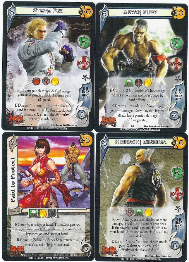 Edit- Added JJ and Tekken Prerelease promos just to get them all on one page for people to see. There's also some promos that were leaked through packs on CoolStuff that I do not have, they are White Crane, Marius Gaius, Kyoufu, Kisheri and I think there's Arrayed for Battle too...