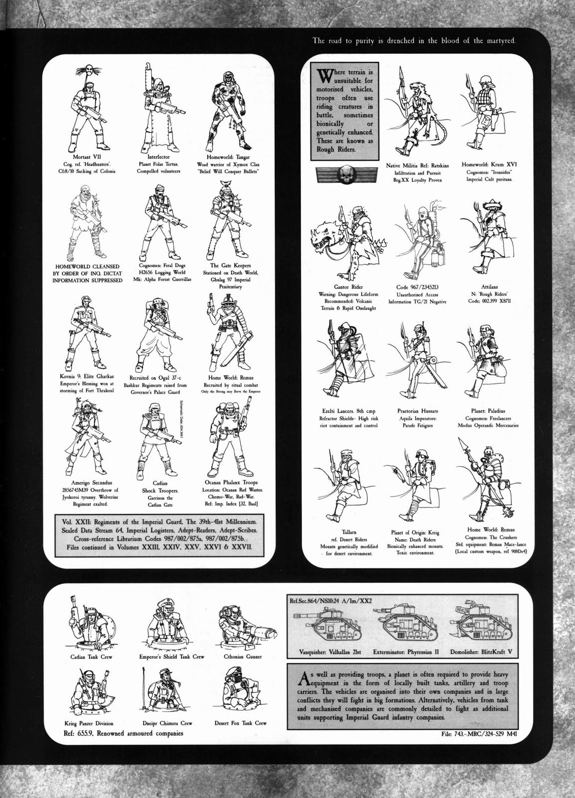 Edit: I am pleased that there are various cultures and races represented in the various IG regiments, but they all still look very human. I want to see some weirdos that are pushing the envelope a LITTLE, but aren't ogryn-level different.