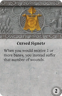 Frankly, the most compelling use I've heard for Cursed Signets is taking the sting out of the Stun token from Dispatch Runner. Again, if the card said you "may" suffer wounds, it would be infinitely better, but you'd still be taking a buttload of wounds the moment some reanimate archers leveled their bows at you.
