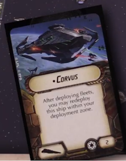 Anyways, Corvus. So I've had fun running Corvus (I'm allowed to talk about stuff once it's actually released to the public ermagerd) in that it allows for a lot of shenanigans. Obviously, Corvus should be your first deployment in most cases because it reveals nearly nothing to your opponent other than its starting speed (still generally recommend 2 but due to the redeployment you can actually make an argument for 4, which is normally suicide for Raiders). You can also deploy squadrons at distance 2 of Corvus and then redeploy it away later, which is a sneaky trick for Rogue squadrons and the like that don't really care about being close to friendly ships that much.