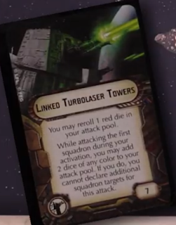 That said, there's an interesting turbolaser ecosystem sprouting up in the game right now and I think that's neat. Generally, if you plan to make only a single attack each round, Slaved Turrets is still better (+1 dice is better than a reroll, you may not need the reroll), with Dual Turbolaser Turrets operating as a "soft" Slaved Turrets if you want to keep your options open on attacking more than once but acknowledge you're likely just getting the one. Linked Turbolaser Towers is for when you ideally want to make two attacks per round and there's that little extra flak help too just in case. Then you've also got Turbolaser Reroute Circuits showing up (for the double-evade ships) plus the standard XI7 or Quad Battery Turrets turbolasers for big ships, etc. There are a lot of options.