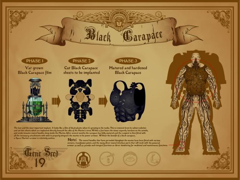 I think this is a totally awesome idea* that could easily be stolen for Deathwatch. What Marine won't be covered with a network of scar tissue and tattoos after several hundred years of service. And you could have a picture to record them! The big Imperial Eagle tattooed on your guy chest? Draw it on! The claw marks from a particularly wounding attack by a genestealer? Big manly gashes on his forarms. The augmetic leg he got after a lascannon blew off the original? Doodle one in! The barcode on the back of his neck. The long service studs in his forehead. Draw em all in!