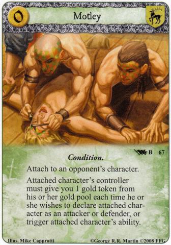 2. The next question is about the card Motley. If the opponent doesn't have any gold, can he defend and attack with that character, or is paying one gold the condition, he has to meet, to initiate an attack(or declare the character with Motley attached as a defender)?