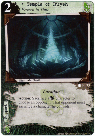 There is, admittedly, a fairly straightforward solution to a Serpent deck: the Khopesh. Sigh. They don't pack Toughness, so targeted destruction works. But bouncing doesn't, because they're so cheap; forced sacrifice doesn't, because the Serpent player will just laugh as he sacrifices a cheap Serpent and drops his Uroborus on the board; trying to win in the Story phase doesn't, because it's very difficult to account for all the permutations of icons you could be up against. All that really works is fighting Cthulhu with Cthulhu, and getting your destruction out fast enough to put the Serpents down, or at least until the other side pops them all back out with Sibilant Cry.